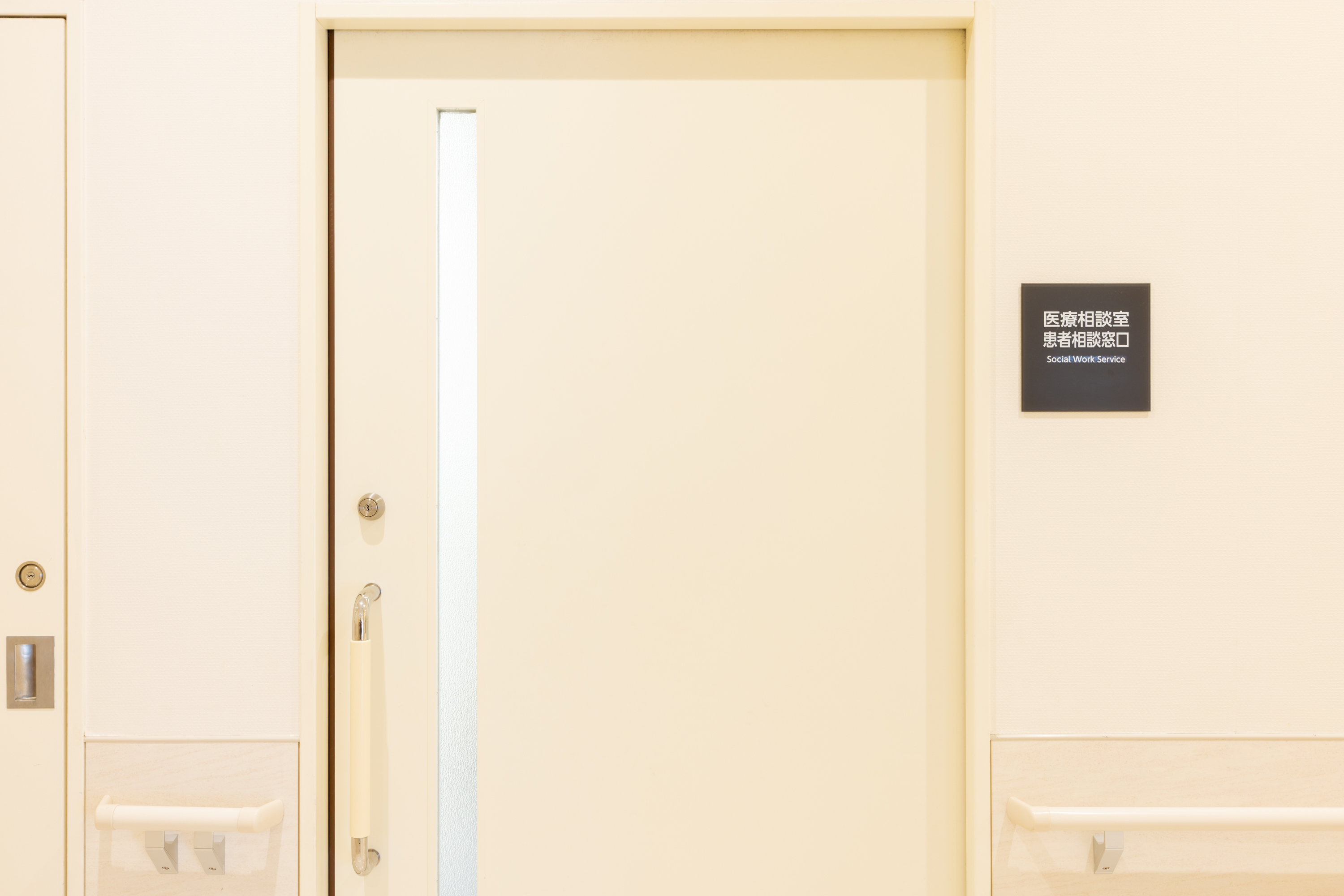 当院には病気になったことで起こるいろいろな問題や悩みの解決をお手伝いするソーシャルワーカー(社会福祉士・精神保健福祉士)がいます。患者さまが安心して療養に専念し、ご家族の悩みや負担を少なくして、健康への回復を促進するのが目的です。